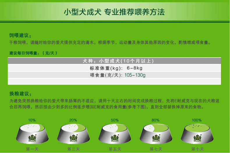 干糧飼喂,請隨時給您的愛犬提供充足的清水。根據(jù)季節(jié)、運(yùn)動量及身體其他原因的變化,酌情增減喂食量。